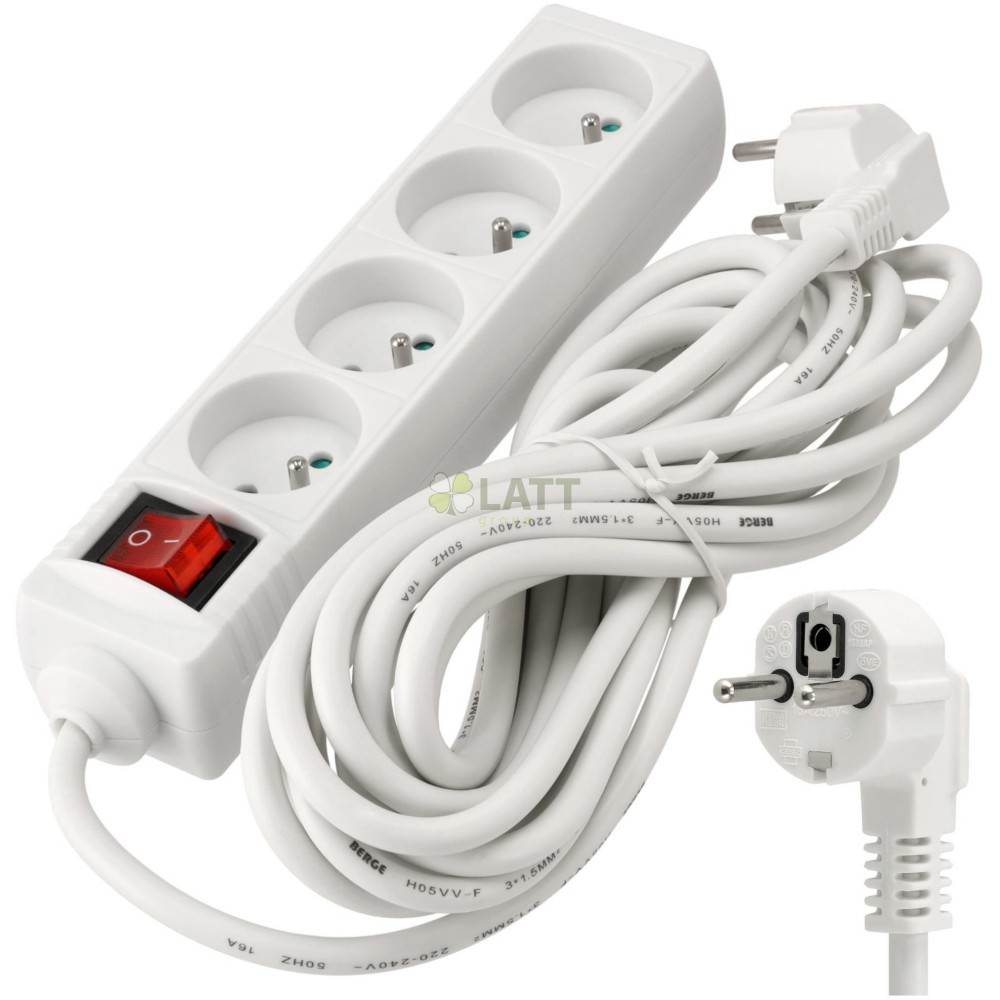 4 zásuvky: Díky 4 zásuvkám můžete připojit několik zařízení současně, díky čemuž je naše prodlužovací šňůra nenahraditelná doma, v kanceláři nebo v dílně.