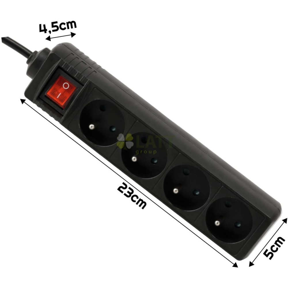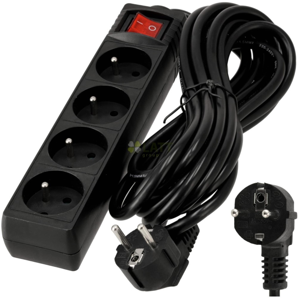 4 zásuvky: Díky 4 zásuvkám můžete připojit několik zařízení současně, díky čemuž je naše prodlužovací šňůra nenahraditelná doma, v kanceláři nebo v dílně.
