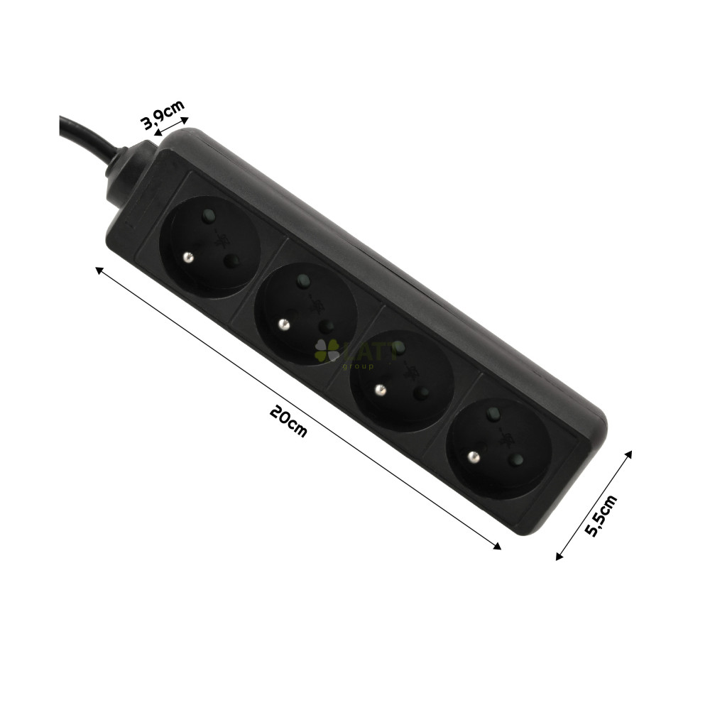 4 zásuvky: Díky 4 zásuvkám můžete připojit několik zařízení současně, díky čemuž je naše prodlužovací šňůra nenahraditelná doma, v kanceláři nebo v dílně.