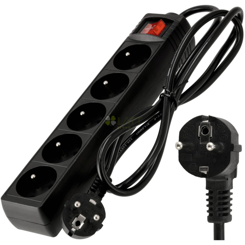 5 zásuvek: Díky 5 zásuvkám můžete připojit několik zařízení současně, díky čemuž je naše prodlužovací šňůra nenahraditelná doma, v kanceláři nebo v dílně.