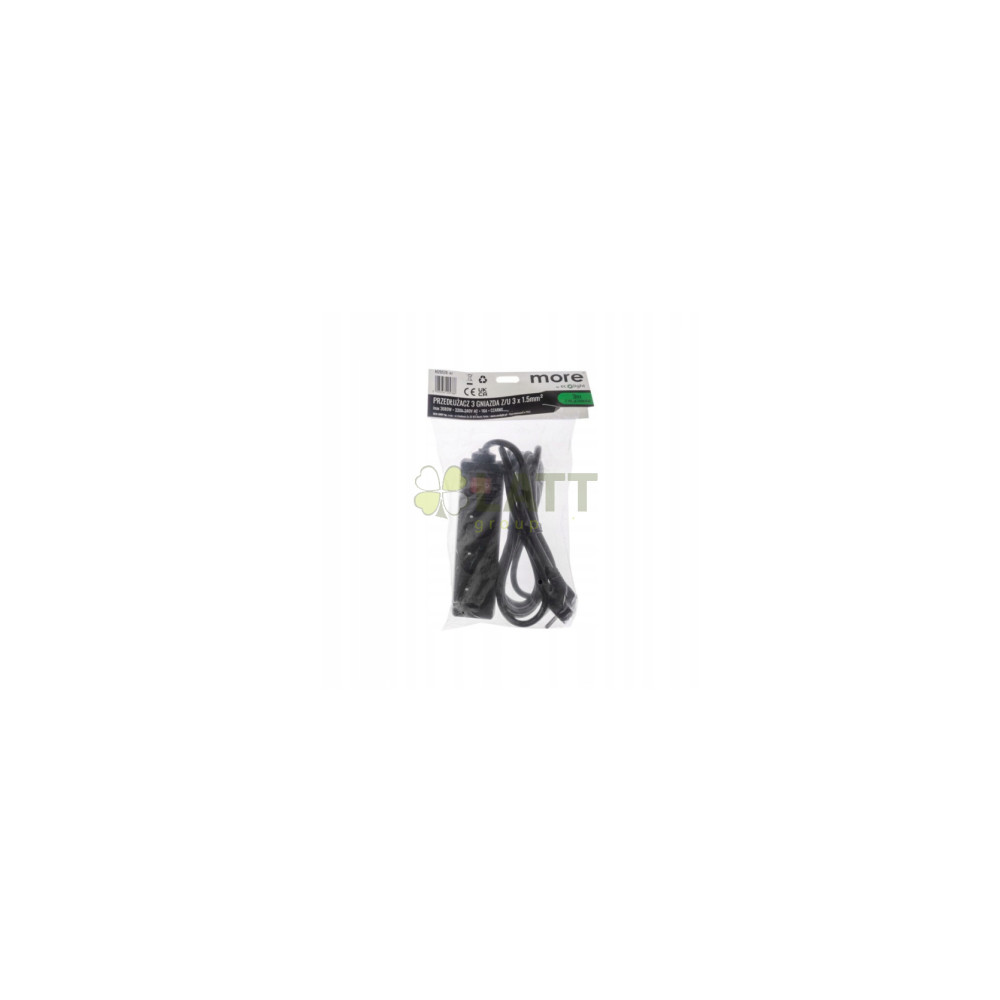 ECOLIGHT Elektrický prodlužovací kabel, 3 zásuvky, 3 m, černý s vypínačem, ČERNÝ 3x1,5 mm