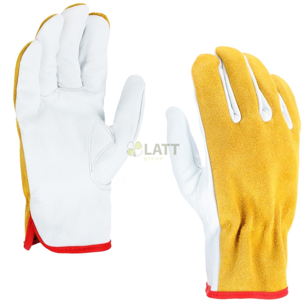 Celokožené rukavice X-GOLDRIVER. Úchopová část a vnitřní část manžety jsou vyrobeny z jednoho kusu lícové kozí kůže, svršek je vyroben ze štípenky medové barvy. Balení: karton 12/120. Barva: bílá/medová. Kat. I