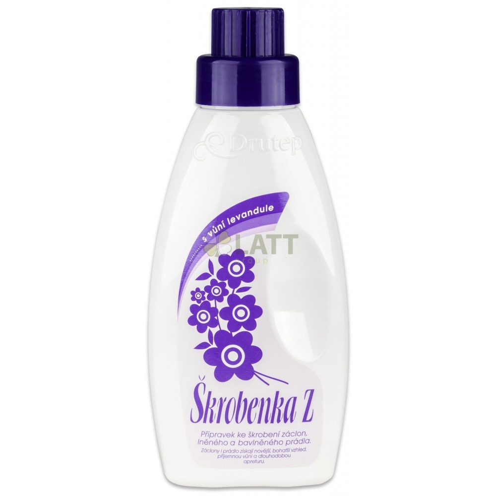 Škrobenka s vůní levandule. Jedná se o přípravek, který je určený na škrobení záclon a také barevného prádla. Díky tomu získají také novější a hezčí vzhled.