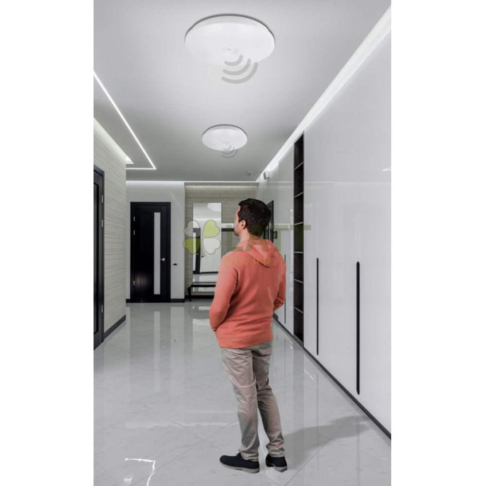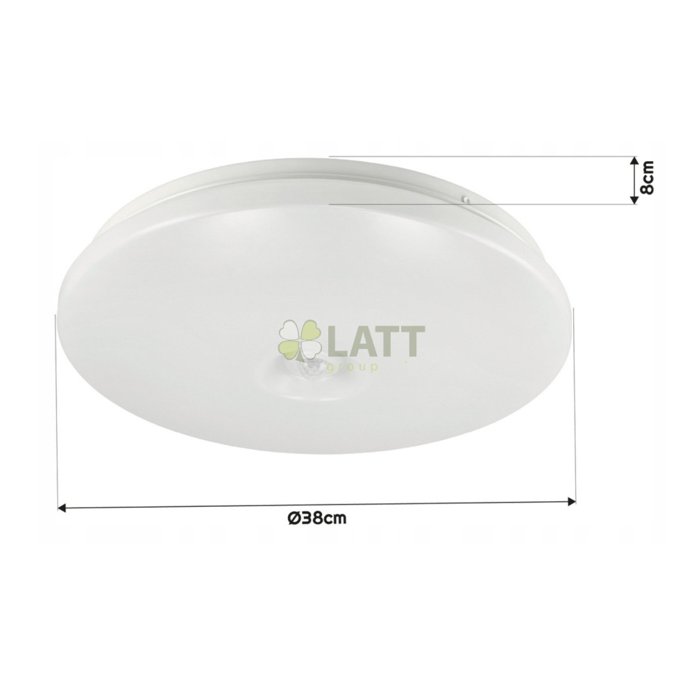 Výrobek má zabudovaný PIR pohybový senzor, který reaguje na přítomnost pohybu, což přispívá k úspoře energie automatickým zapínáním a vypínáním osvětlení v závislosti na potřebách. Technické údaje: Model: LED stropní svítidlo s 24W pohybovým senzorem Materiál: plast Stupeň krytí: IP20 Napájecí napětí: 230V AC Výstupní výkon: 24W 1920LM Barva světla: Neutrální Úhel světla: 320° Vestavěný pohybový a soumrakový senzor: Ano Možnost seřízení snímače: Ano Certifikáty: CE, RoHS