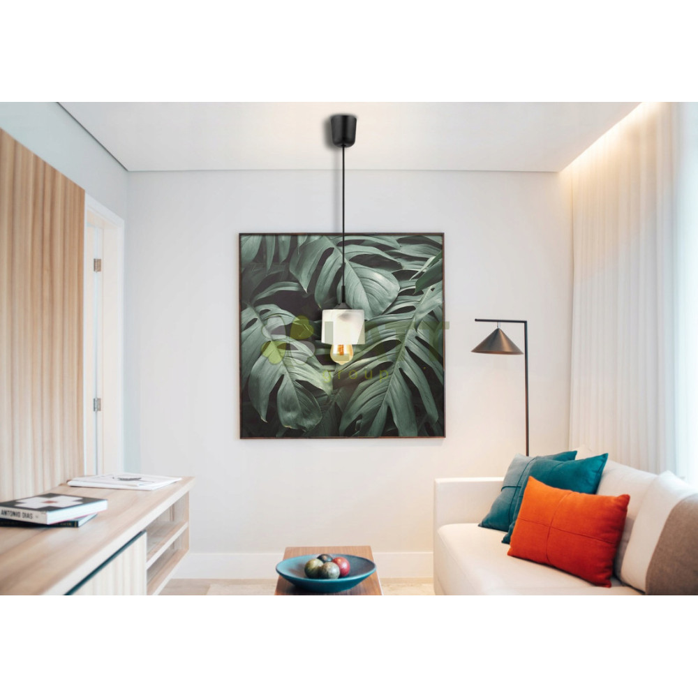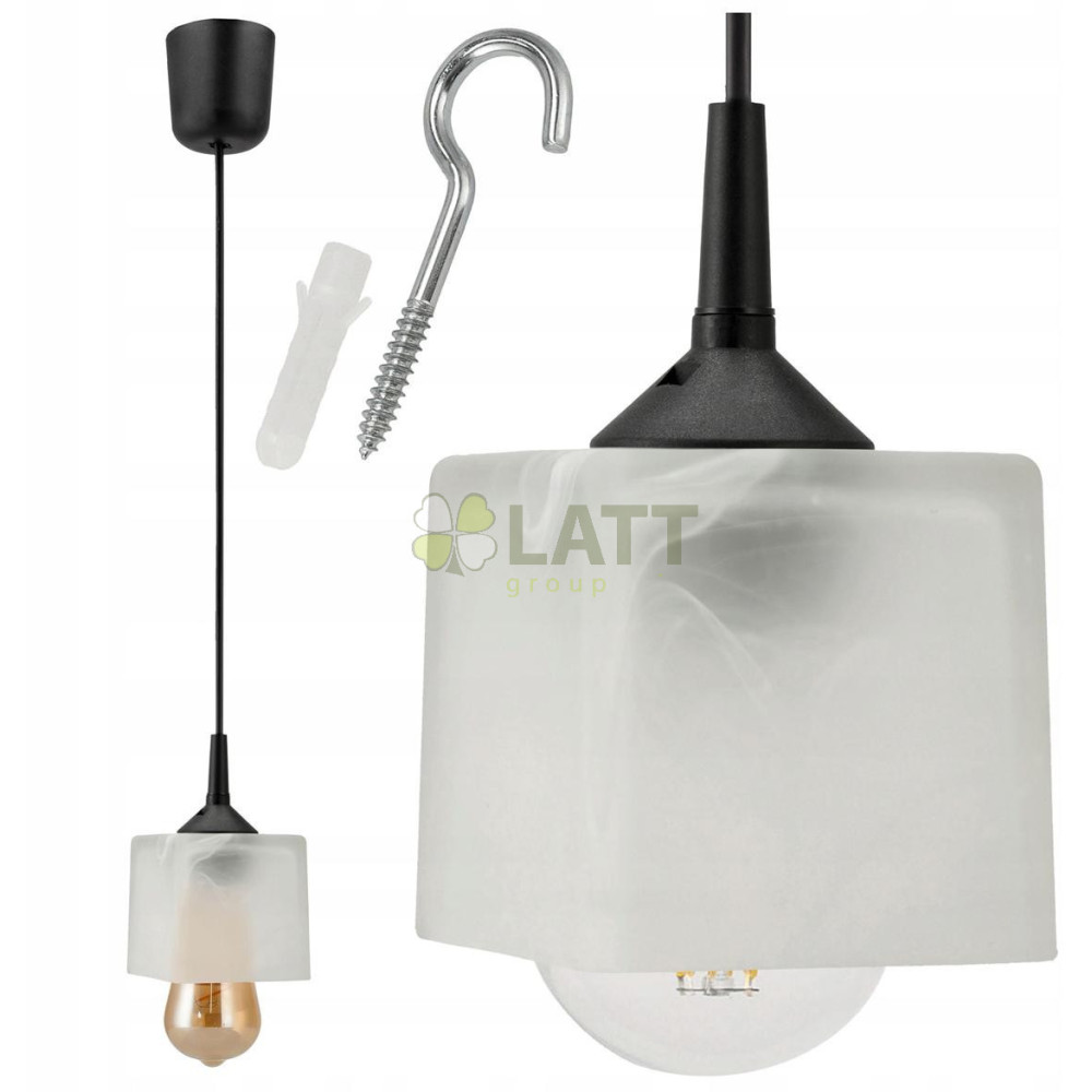 Stropní závěsné svítidlo 100cm 1xe27 skleněné kostkové stínidlo bílé