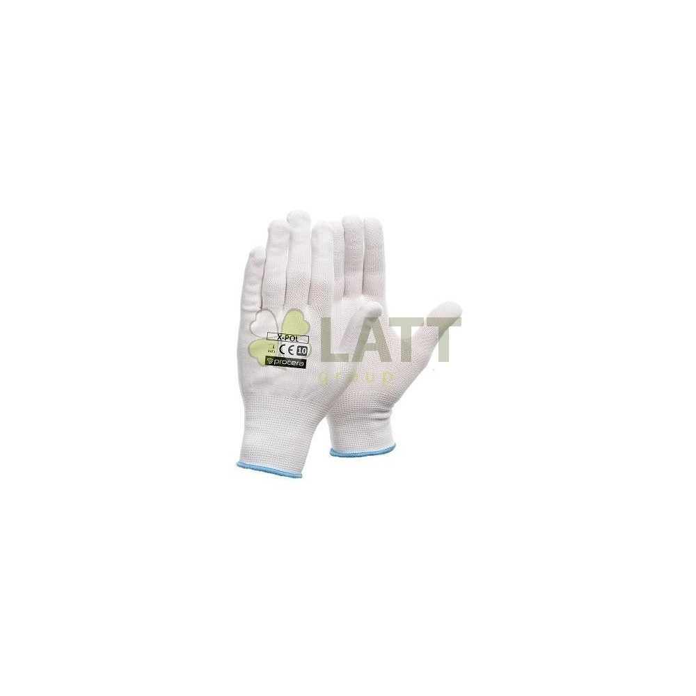 Rukavice X-POL vyrobené z polyesteru. Ideální pro manuální práci. Velmi dobrý pocit z drženého objektu. Dobře se přizpůsobí tvaru ruky. Pružné a elastické. Zakončené lemem. CE EN 21420:2020. Balení: karton 12/300. Bílá barva.