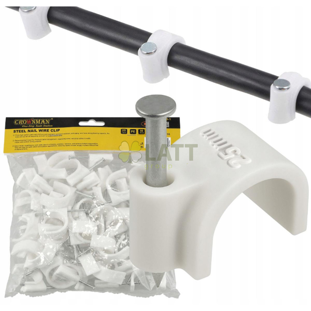 CROWNMAN Držáky kabelů pro kabelové girlandy s hřebíkem 25 mm 50 kusů bílé