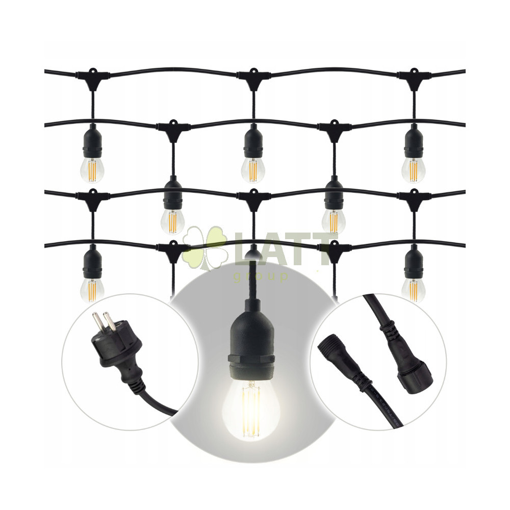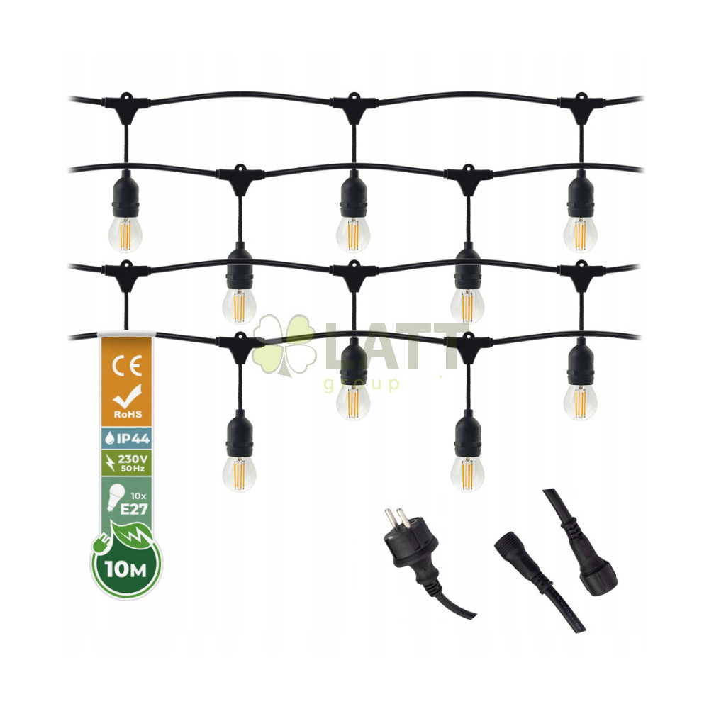 ZAHRADNÍ SVĚTELNÝ ŘETĚZ 10M 10xE27 Sada s LED žárovkami IP44
