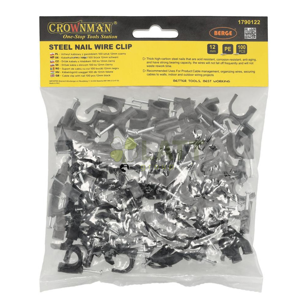 ❓ Často kladené otázky – Často kladené otázky1. Pro jaké kabely jsou 12mm svorky určeny? Pro velmi silné napájecí kabely, zahradní kabely, LED kabely a těžší technické kabely. 2. Jsou nehty odolné vůči povětrnostním vlivům? Ano – jsou vyrobeny z vysoce uhlíkové oceli, která je odolná vůči rzi a vlhkosti. 3. Jsou konzole vhodné pro montáž světelných řetězů? Ano – zejména u modelů se silným, zesíleným kabelem. 4. Vyžaduje montáž specializované nářadí? Ne, postačí obyčejné kladivo. | |