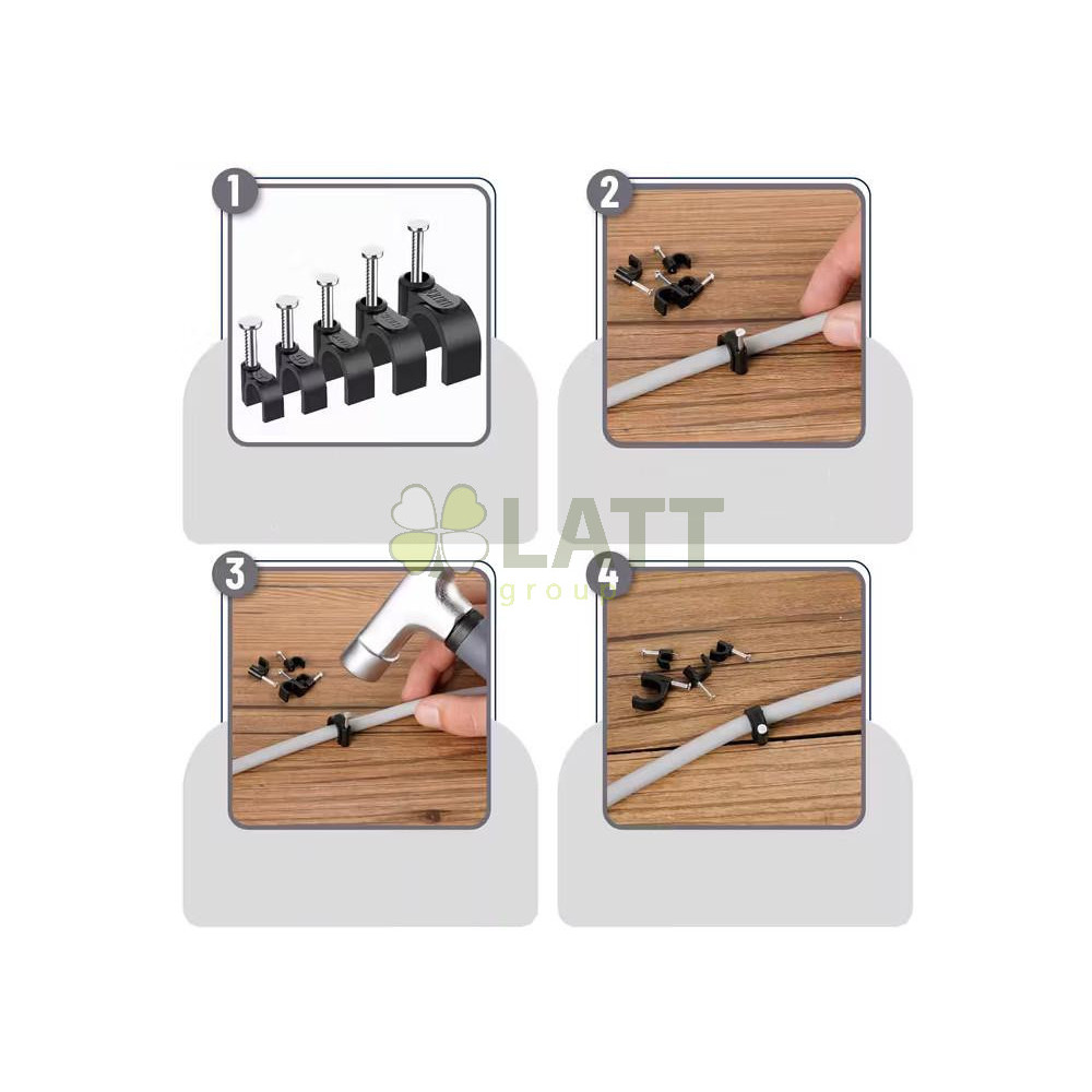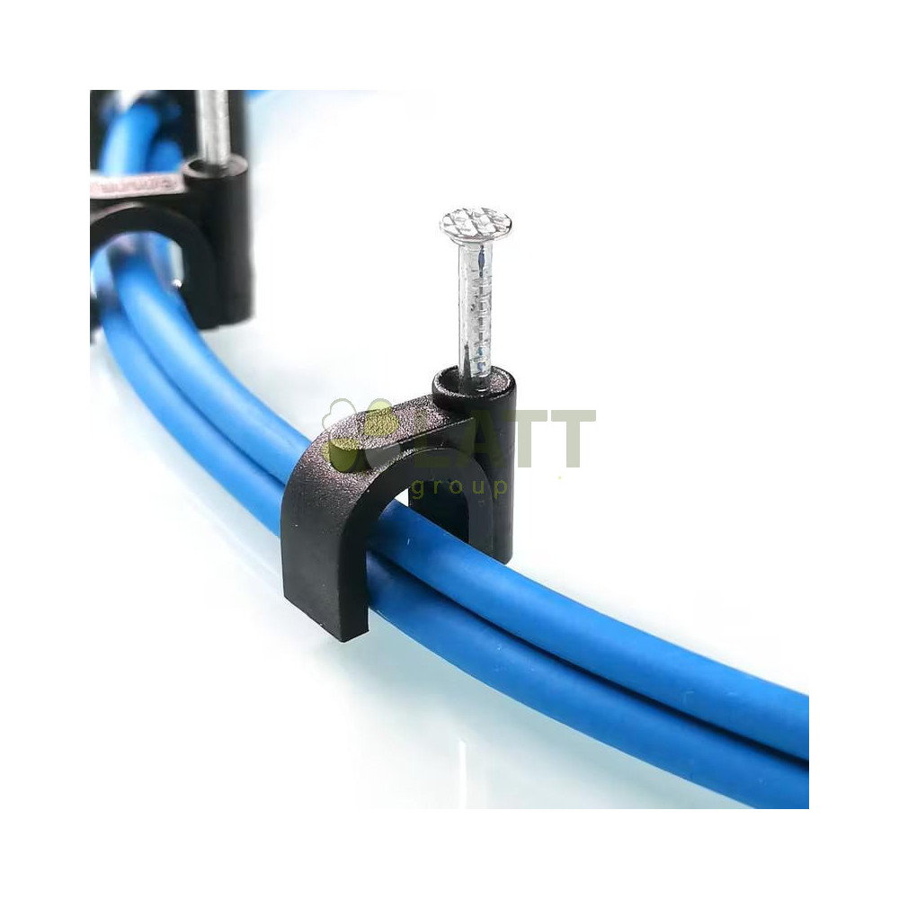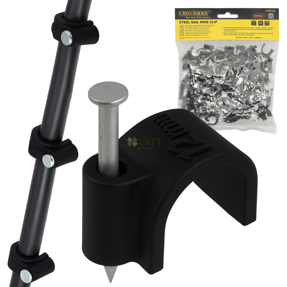 Držáky kabelů pro kabelové girlandy s hřebíky 12 mm, 100 kusů, černé