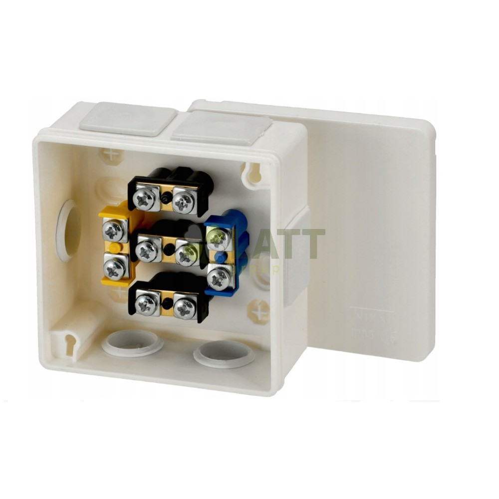 Krabice pro povrchovou montáž je hermeticky uzavřená, čímž chrání instalaci před vodou, prachem a jinými nečistotami, což zaručuje bezpečný provoz elektrických zařízení a systémů.