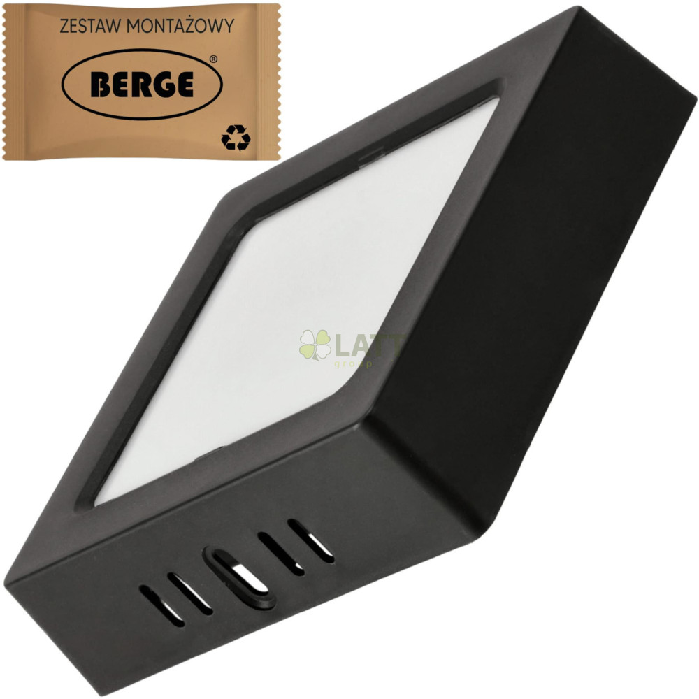 BERGE Čtvercový LED panel černý - přisazený - 6W - PC - neutrální bílá