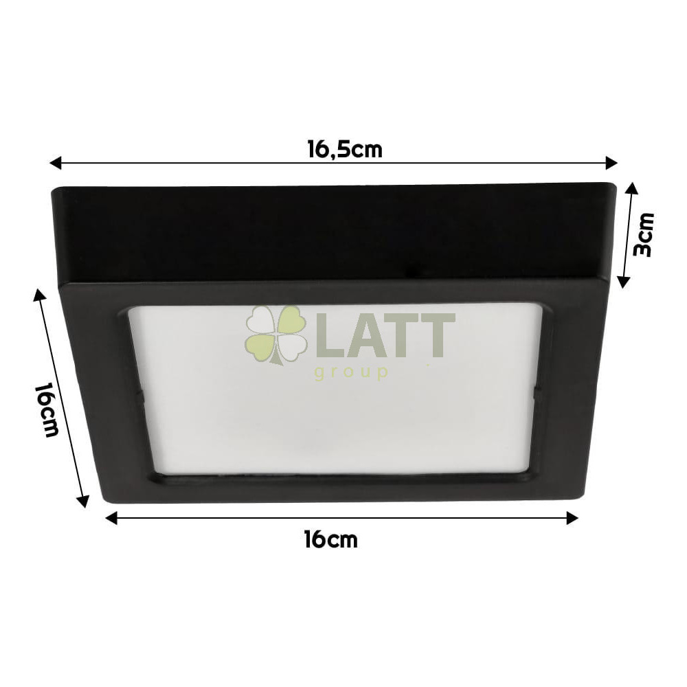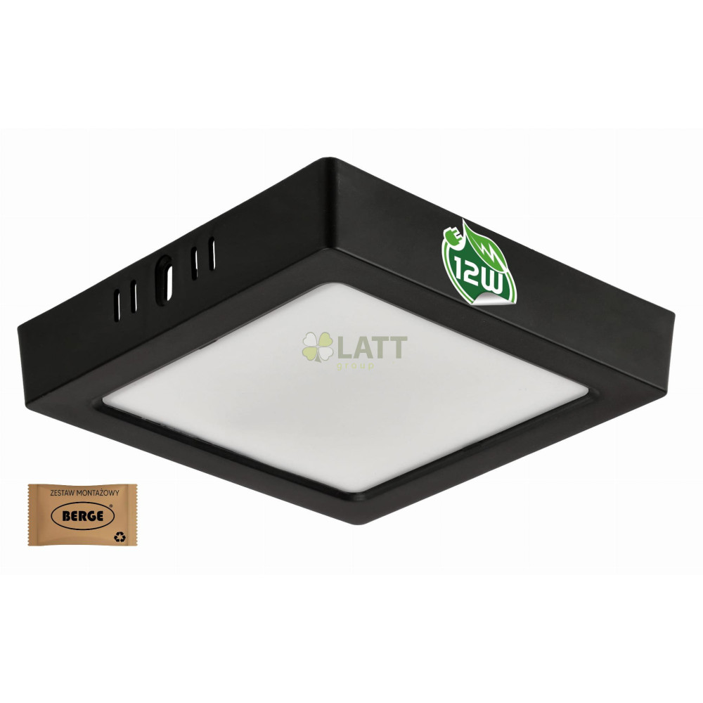 BERGE Čtvercový LED panel přisazený - černý - 12W - PC - neutrální bílá
