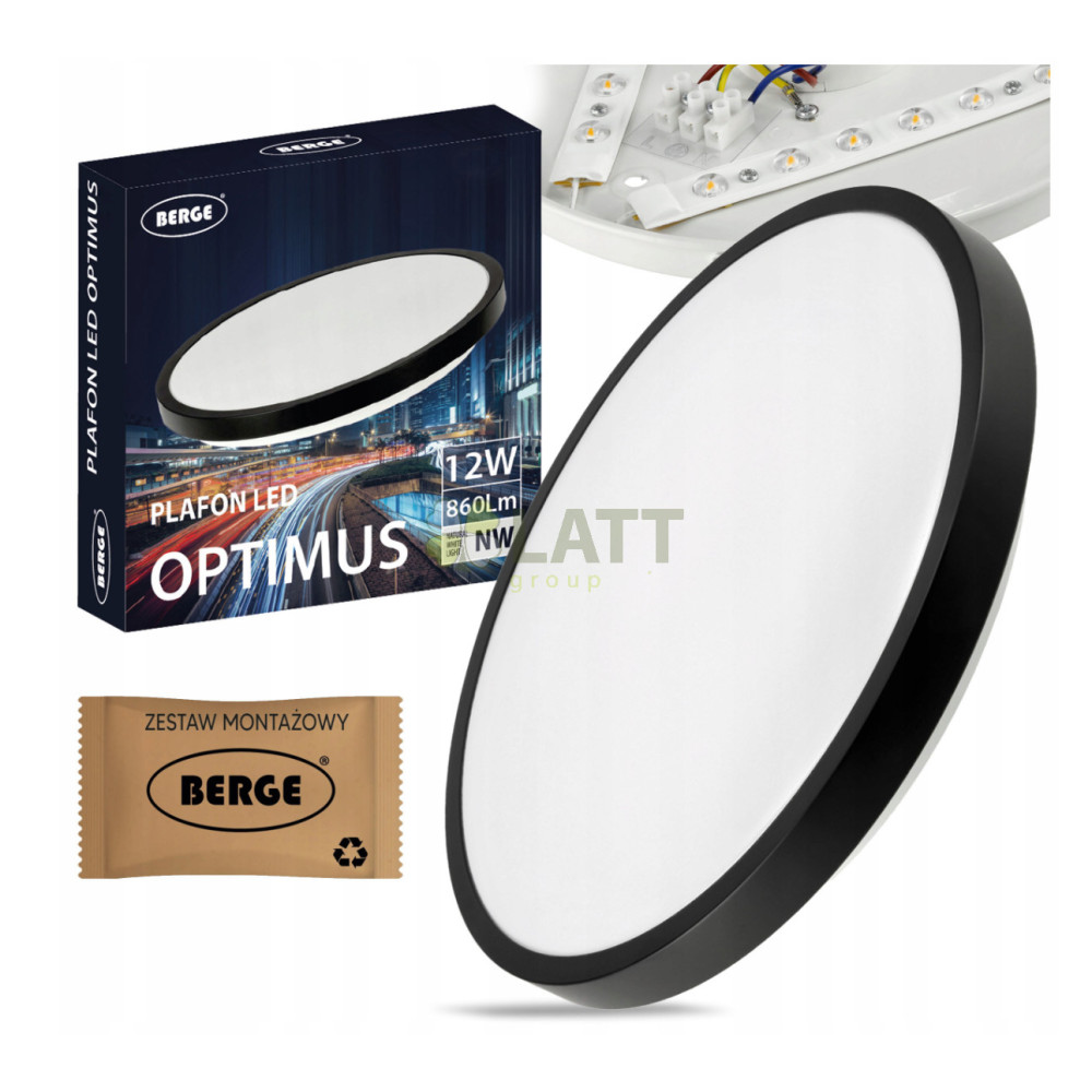 BERGE Přisazený LED stropní panel 12W 860lm Kulatý černý NW