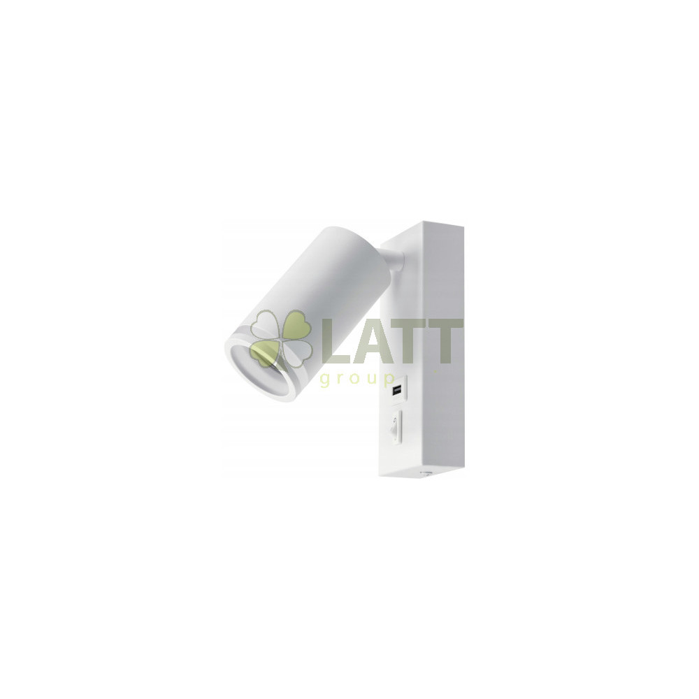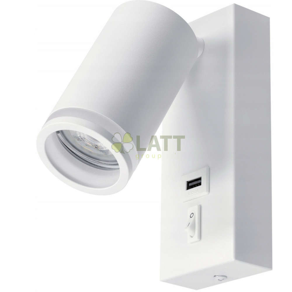 GU10 LED nástěnné svítidlo / lampa s vypínačem a USB portem - bílá