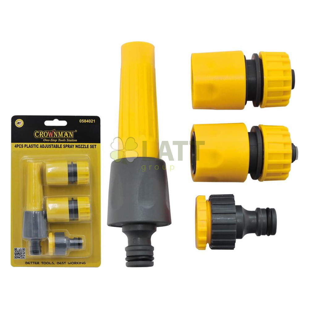 Technické údaje: Sada obsahuje 4 zahradní konektory pro připojení hadice Materiál: plast Použití: Perfektní pro postřik zahrady, mytí auta Na hadici 1/2 Na kohoutek 1/2 3/4