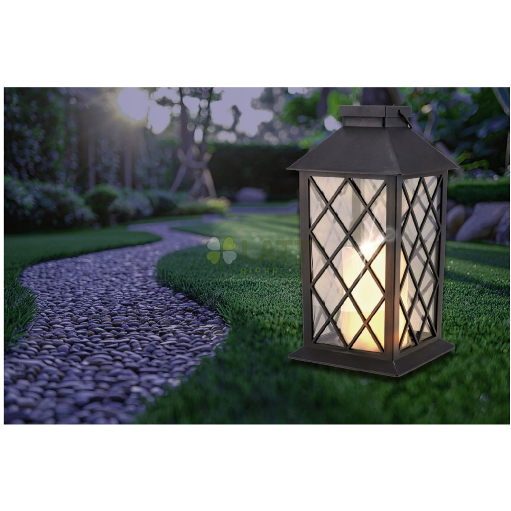 ✅ Lucerna je vybavena amorfním solárním panelem a vestavěným soumrakovým senzorem, který lampu automaticky rozsvítí při setmění.