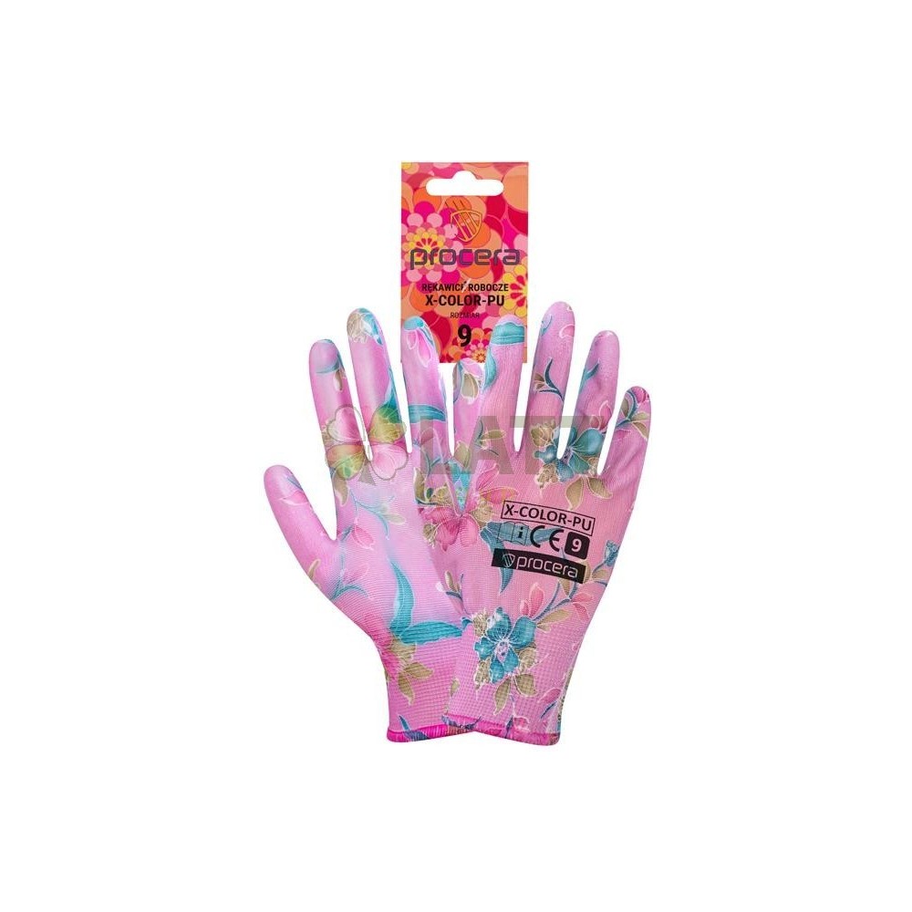 Rukavice X-COLOR vyrobené z polyesterové pleteniny potažené polyuretanem. Pružné a pružné, přizpůsobí se tvaru ruky. Vynikající pocit z držených předmětů. Zajímavé barvy a design. Určeno pro zahradnické, ruční, kontrolní, strojní, dopravní, výrobní a jiné práce. EN21420:2020. Velikosti: 6, 7, 8, 9. Balení: karton 12/240.